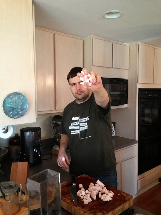 Drain and squeeze as much water as you can out of the spinach, before putting in a food processor with one egg. The recipe says to use extra-large; I only had large eggs, but I don't think it made a significant difference.