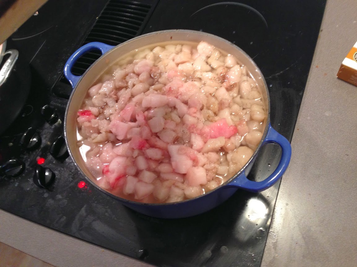 Once they are cut, they are ready to cook! I of course had neglected to start the water boiling because I was too busy playing with the machine, so the pasta had to sit for a bit. This is when I discovered that we definitely need some sort of holding or drying rack for the pasta, because I only have so much countertop space. Once the water is boiling, the pasta only needs to cook for 3-5 minutes, since fresh pasta cooks faster than dried.